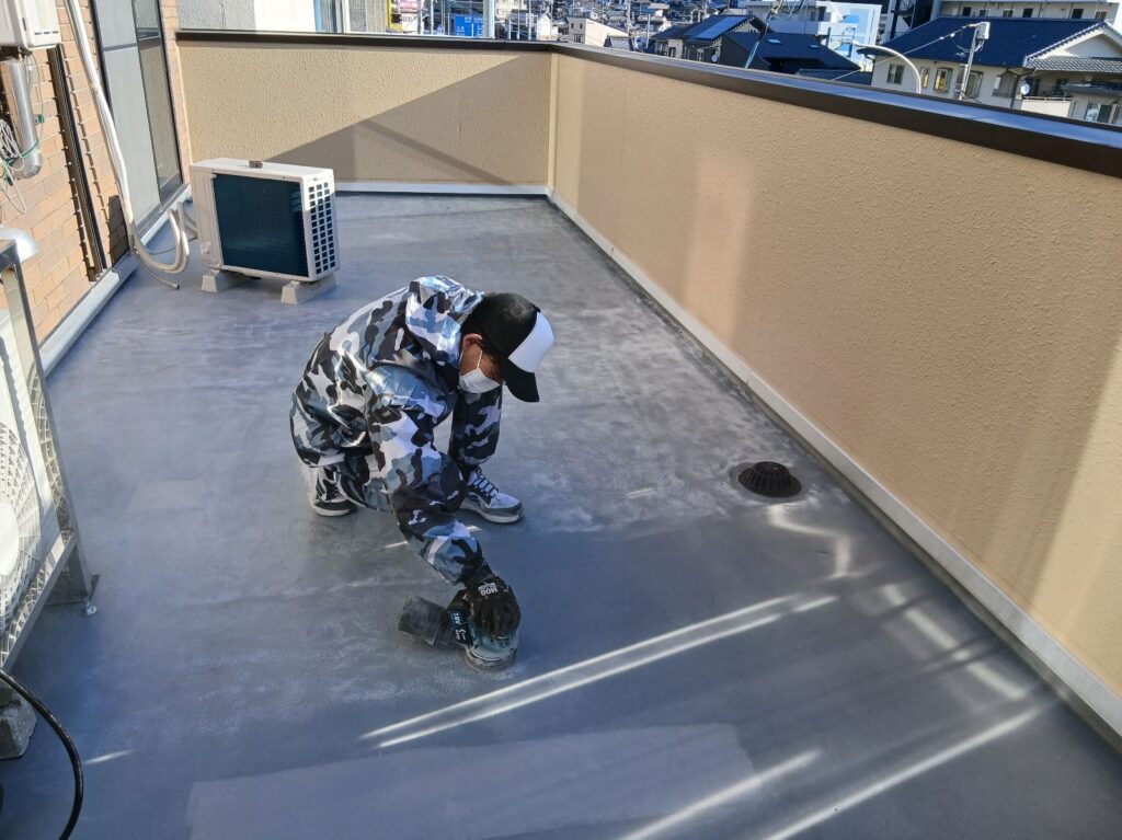 本日は、呉市阿賀にて「ベランダFRPトップコートの塗装」を行いました。