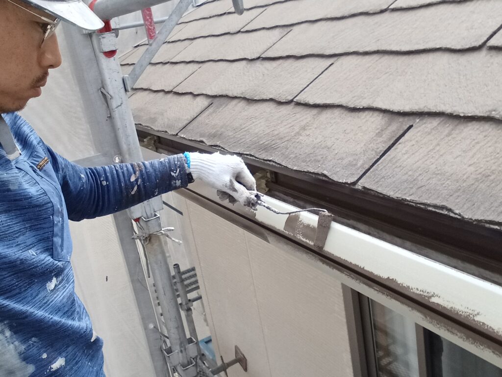 本日の作業は、「鼻隠し(はなかくし)と雨樋(あまどい)の中塗り」です🎨