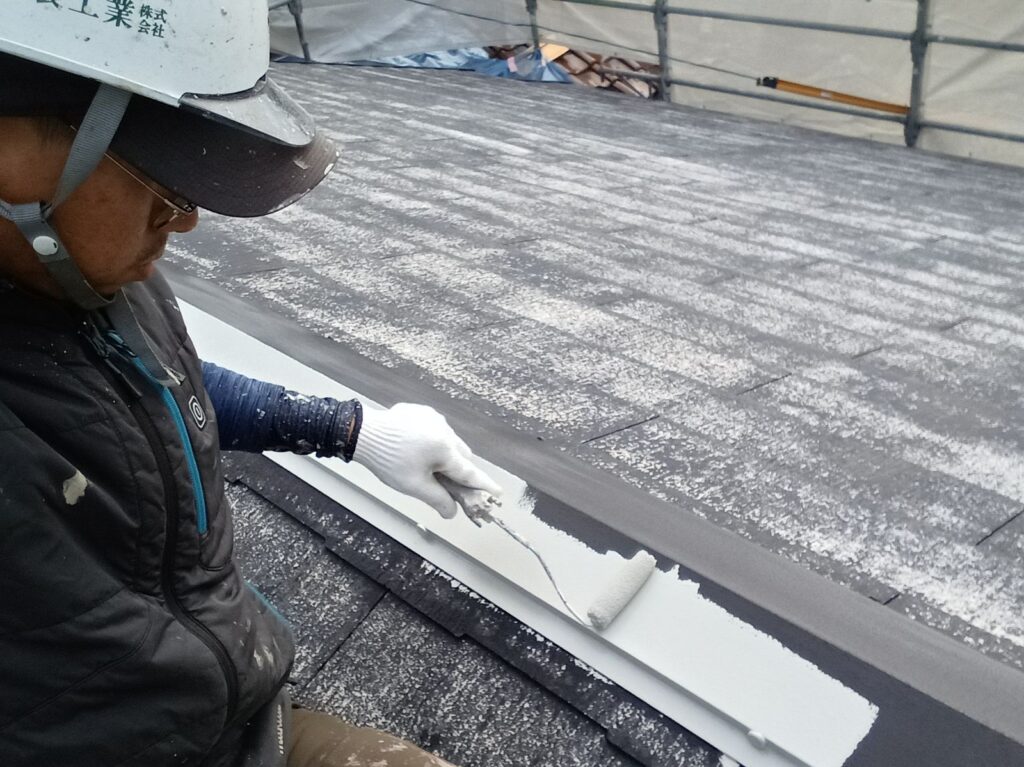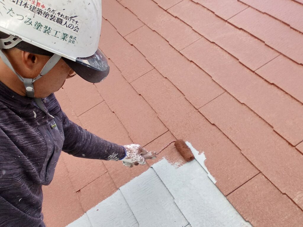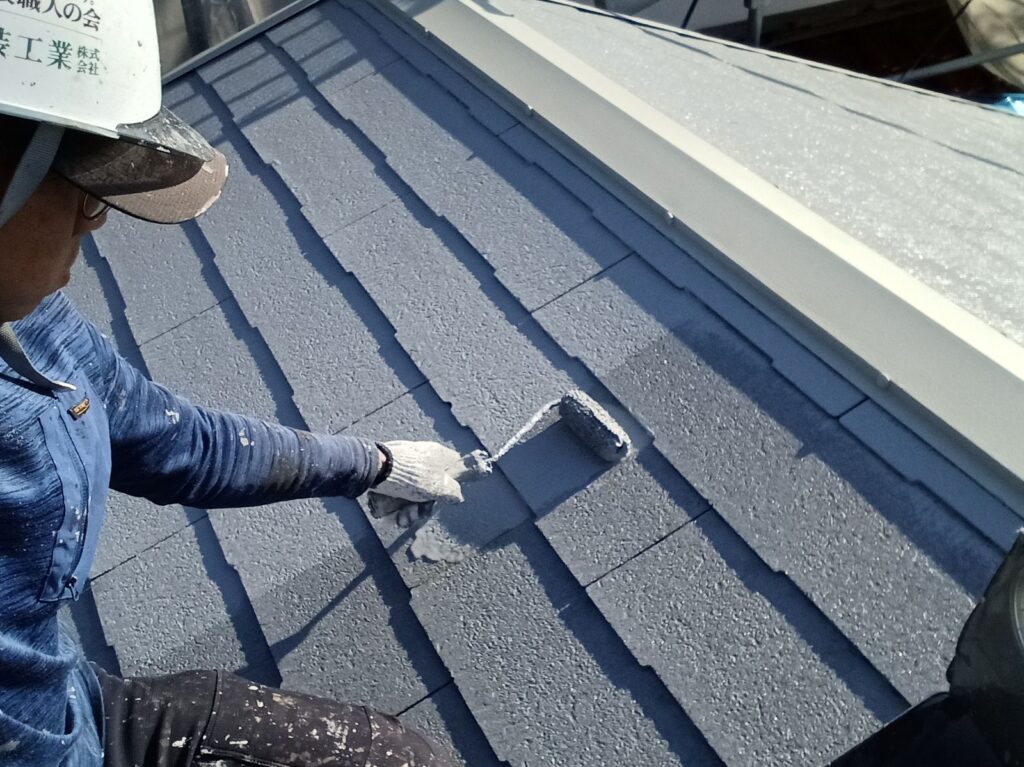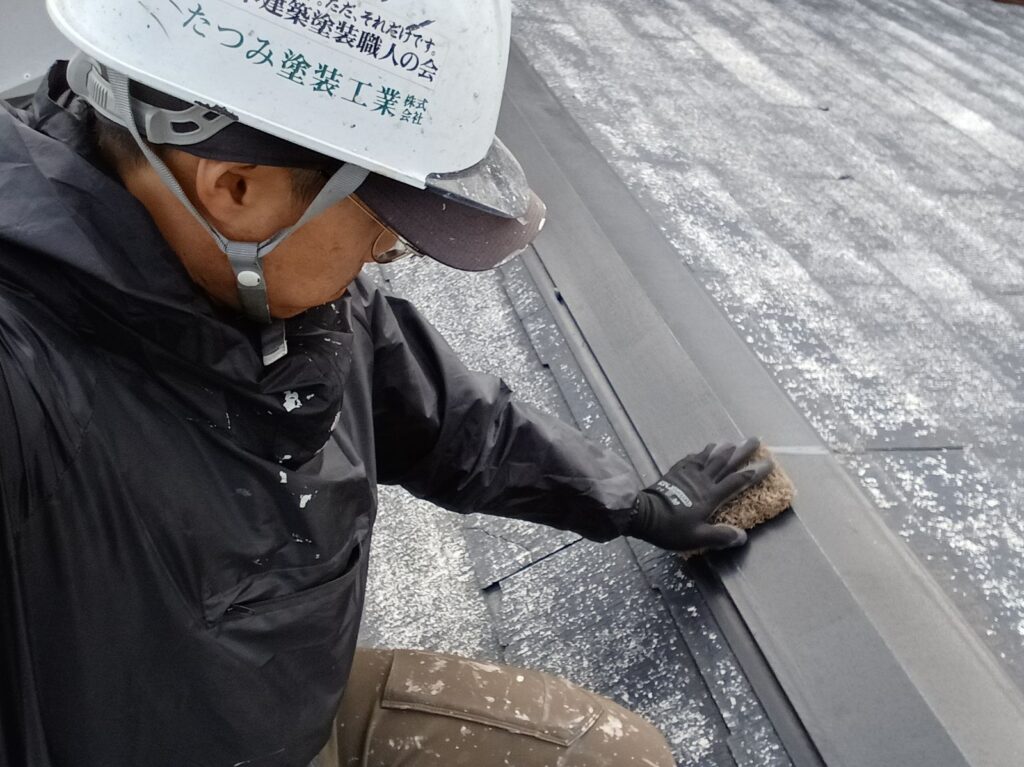 さび止めが完了したら、屋根材に下塗りをしていきます。