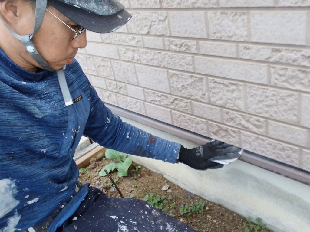 力の入れ加減が難しく、コーキング材をとりすぎずに、しっかり押さえるのが重要です。