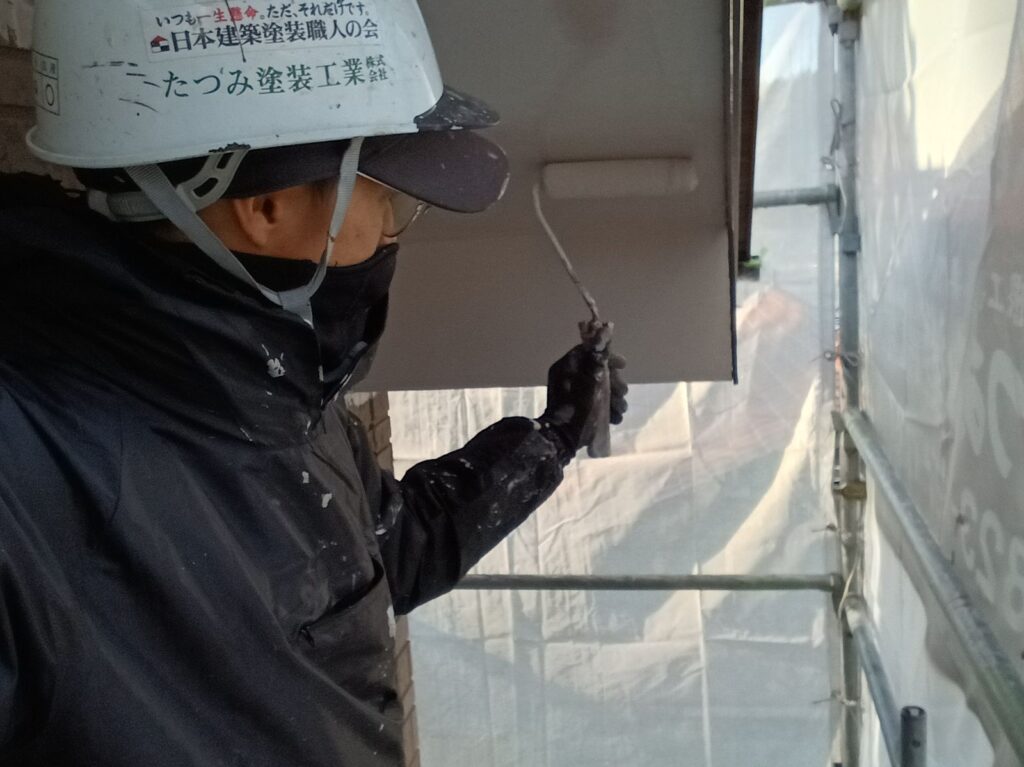 外壁の塗装をすると、汚れてしまうので、中塗りで止めておきます。