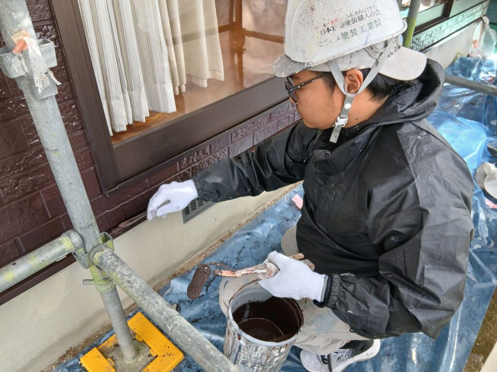 下地調整材を塗装し、外壁と上塗り材の密着性を向上させます。