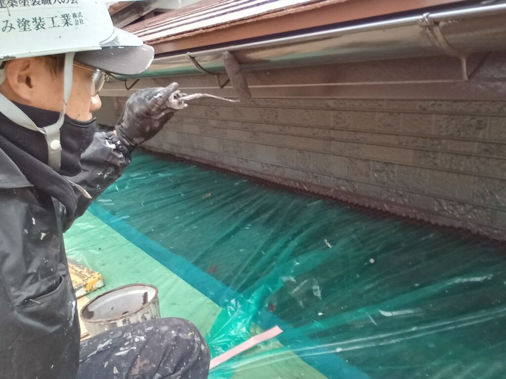 塗装した付帯部と塗装しない箇所に、養生を行います。