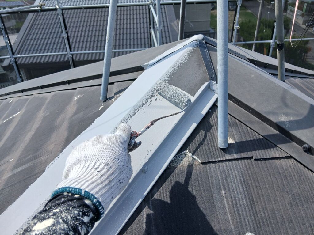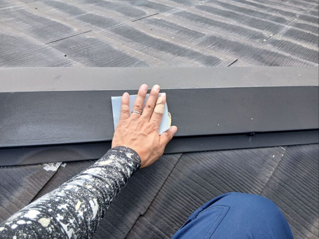 屋根板金なので、遮熱効果のあるサビ止めプライマーを使用しました。