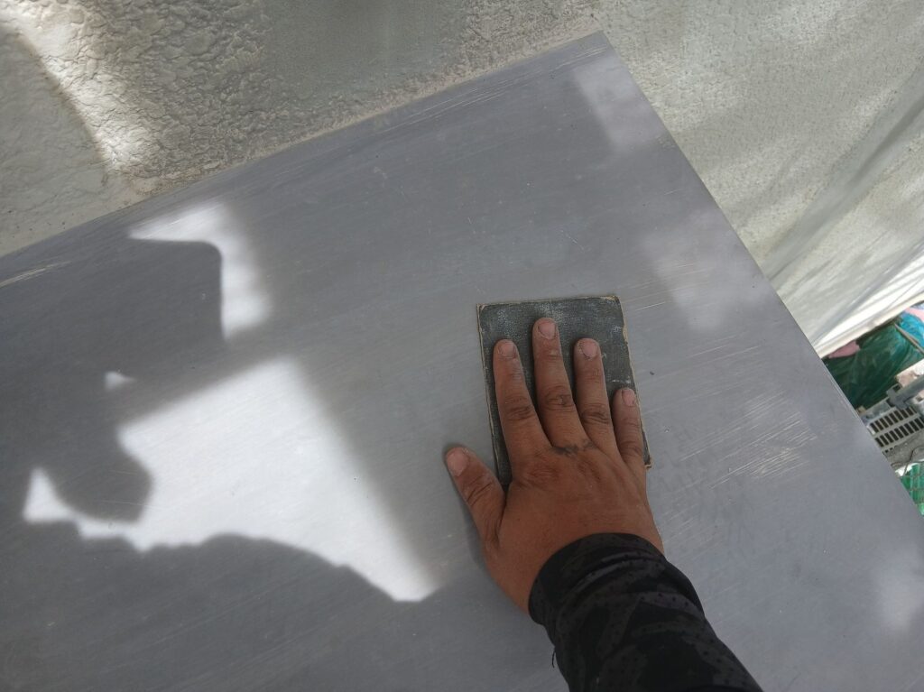 サンドペーパやナイロンたわし等で、丁寧に作業します。