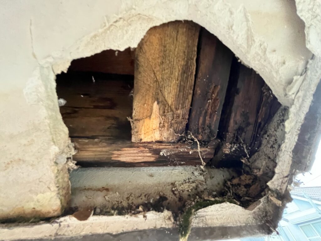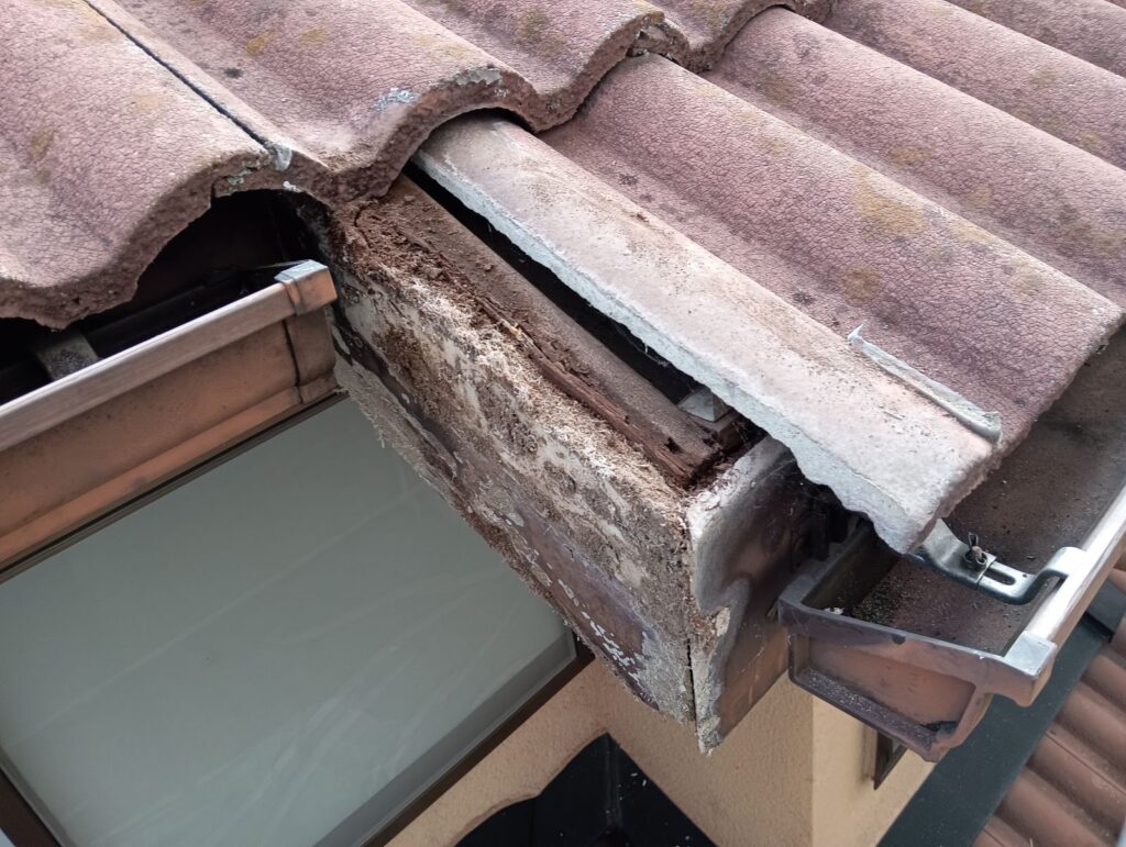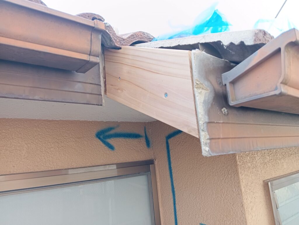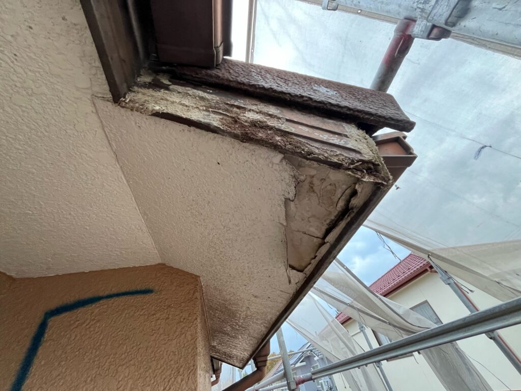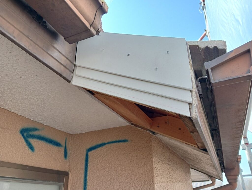 破風板と天井が、腐ってしまっています😨