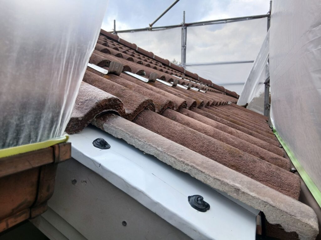 瓦を乗せる前に、板金を差し込みました。