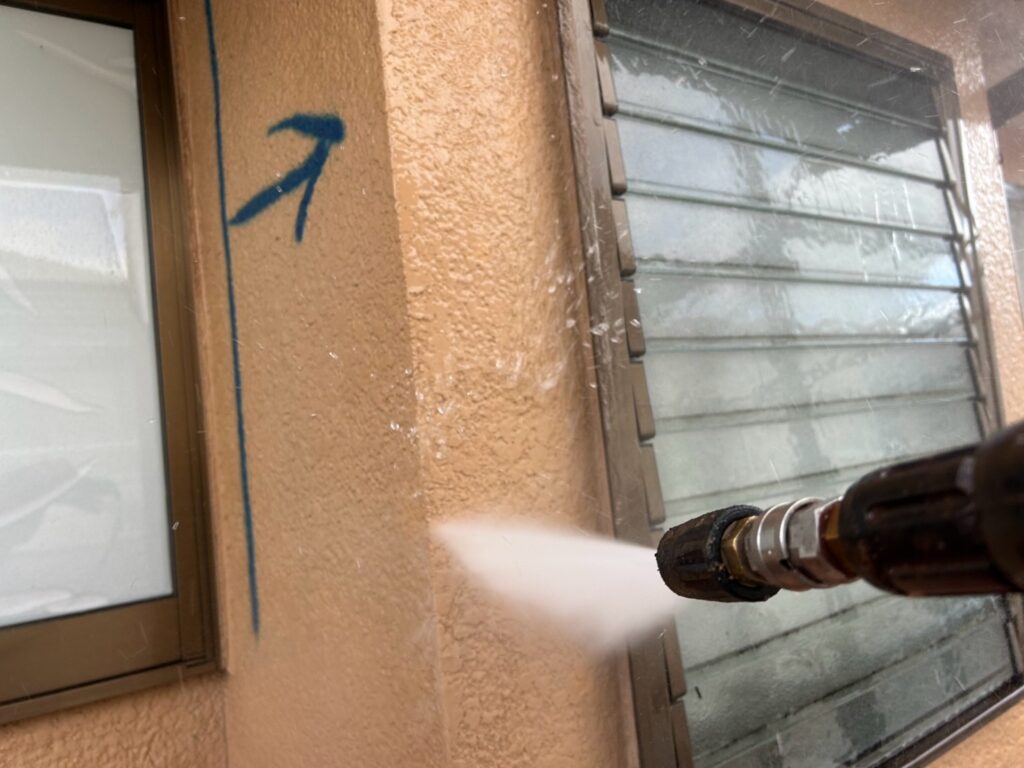 コーキングがしっかり乾燥したら、高圧洗浄を行います。