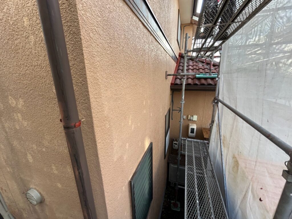 外壁の塗装をすると、汚れてしまうので、中塗りで止めておきます。