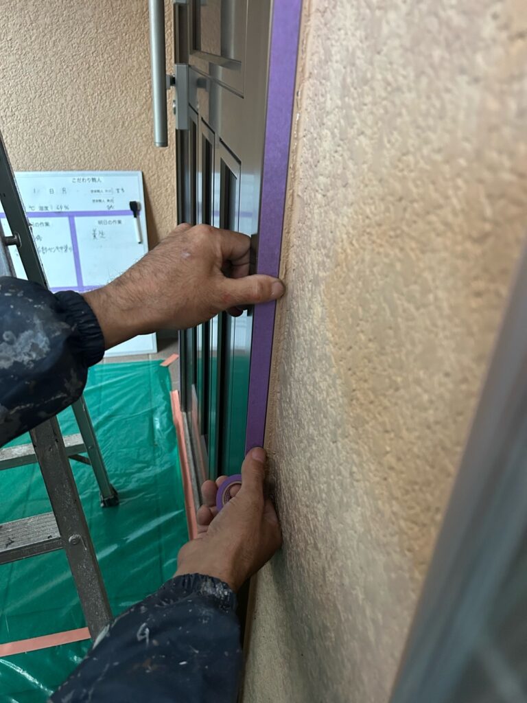 塗装した付帯部と塗装しない箇所に、養生を行います。