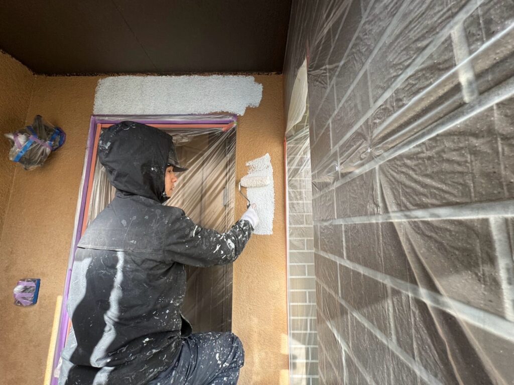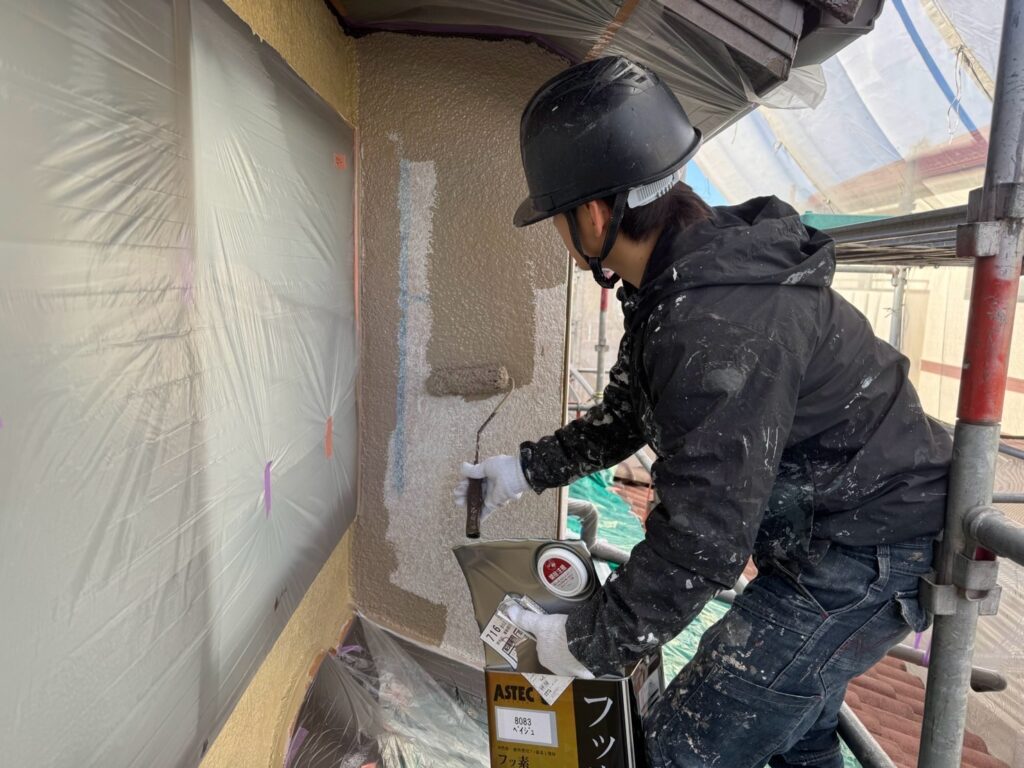 下地調整材を塗装し、外壁と上塗り材の密着性を向上させます。