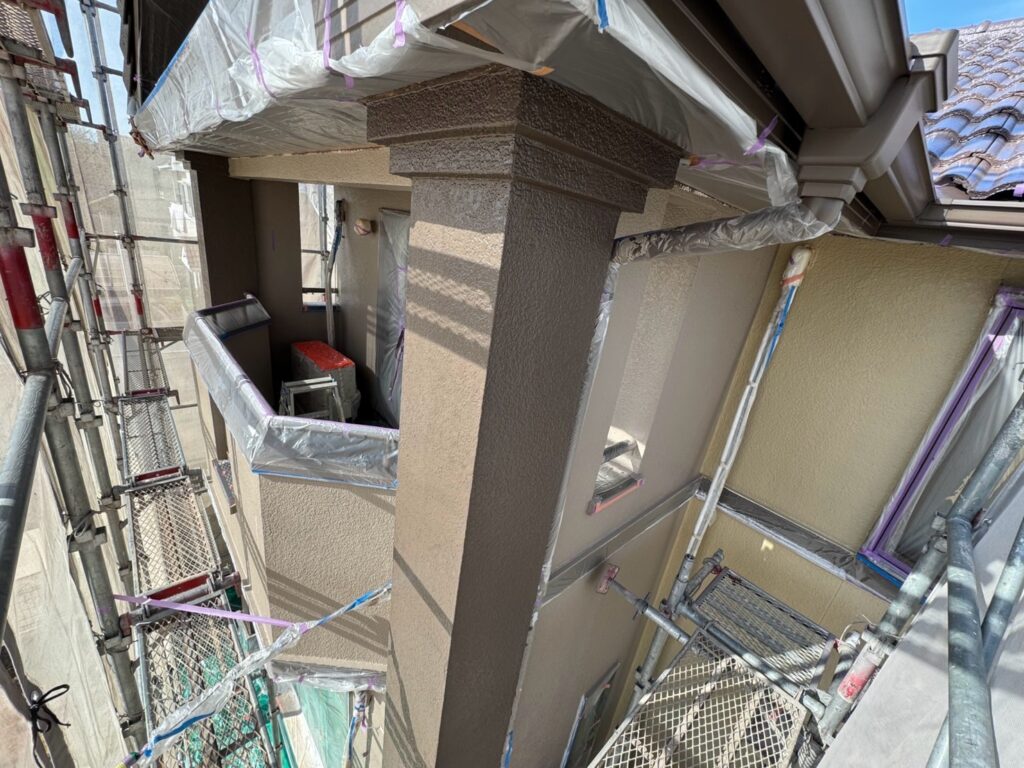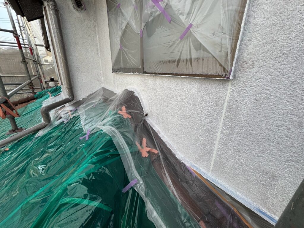 養生を撤去し、外壁の塗装が完了します。