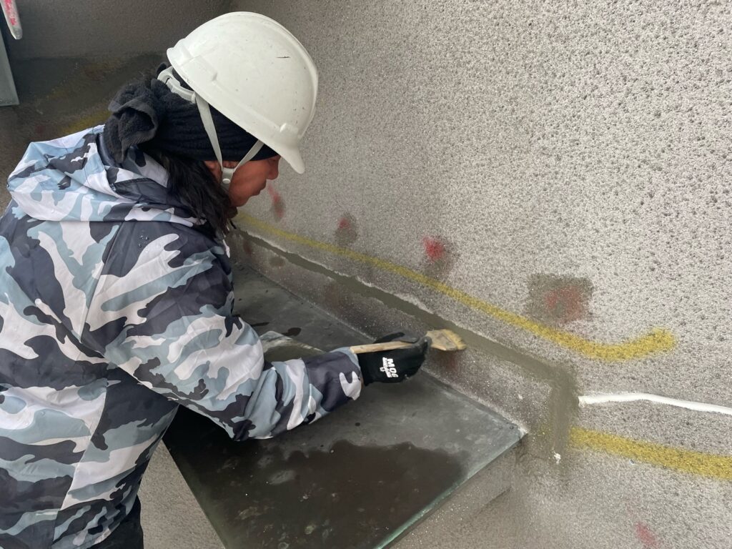 下地処理では、洗浄と同時に細かなひび割れの補修なども行います