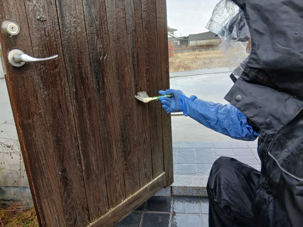 木部の塗装前に、薬品を使って洗浄します。