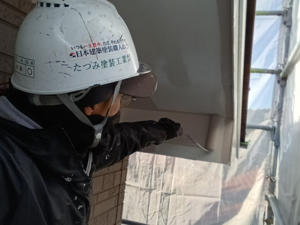 現場親方ブログ2025.11.2011/19 破風板、軒の中塗りこんにちは、たつみ塗装工業の本森です。今日は、豊栄の現場で、破風板と軒の中塗りをしました🖌️上塗り材を塗装します!色が付いて、ワクワクしますね😆破風板は茶色で、軒が薄いピンクです✨きれいに塗装できました😆たつみ塗装は、手を抜かない事を昔から、心がけています。外壁塗装をお考えのお客様はぜひ、たつみ塗装へお任せください。無料お見積はこちら