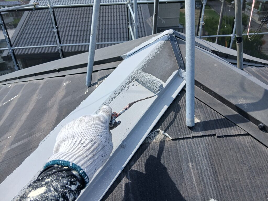 今日は、高屋の現場で屋根の錆止めプライマーを塗装しました。
