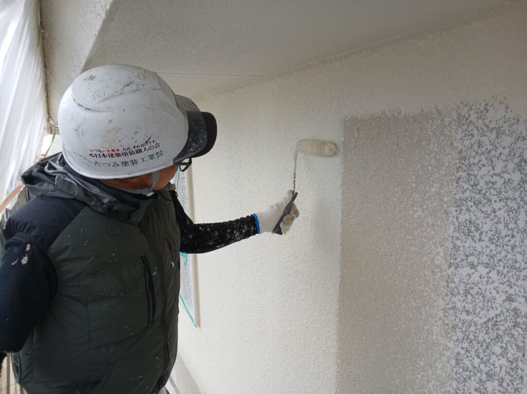 現場親方ブログ2025.09.119/11 外壁中塗りこんにちは、たつみ塗装工業の本森です。今日は、高屋の現場で、外壁の中塗りをしました。吹き戻した箇所に、シーラーを塗装し、中塗りをしていきます。ローラーで塗装が難しいところは、刷毛を使います。中塗りでは、若干透けて見えます。上塗りを掛ければ、ムラも透けもバッチリなくなります!補修は、ほとんどわかりませんね!たつみ塗装は、手を抜かない事を昔から、心がけています。外壁塗装をお考えのお客様はぜひ、たつみ塗装へお任せください。無料お見積はこちら